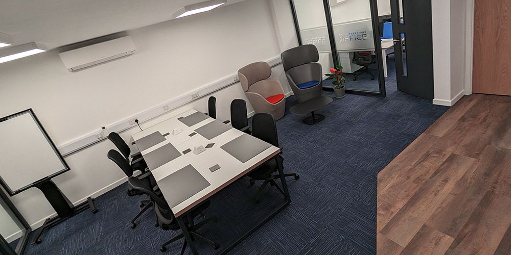 Our meeting room works perfectly as a team workspace or a conference suite for up to eight people with facilities for video conferencing, meeting clients in person or working on shared projects in a convivial environment.