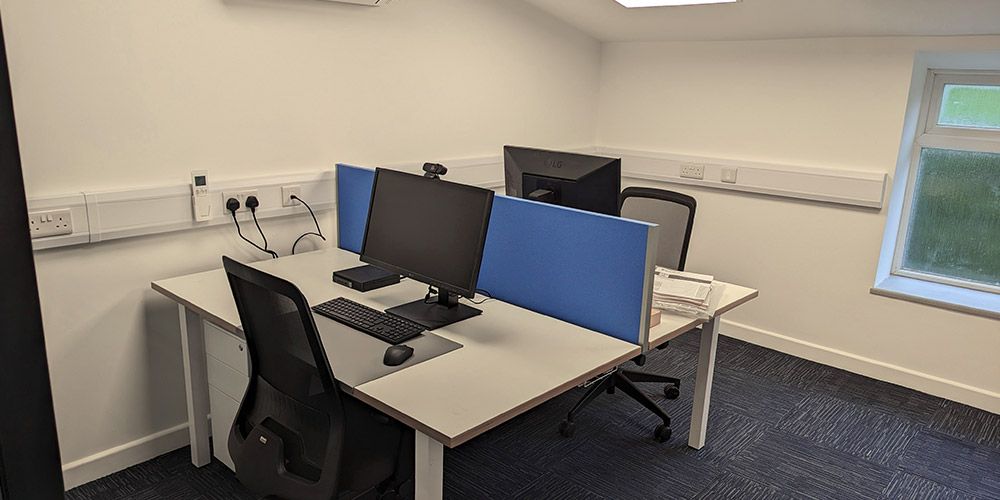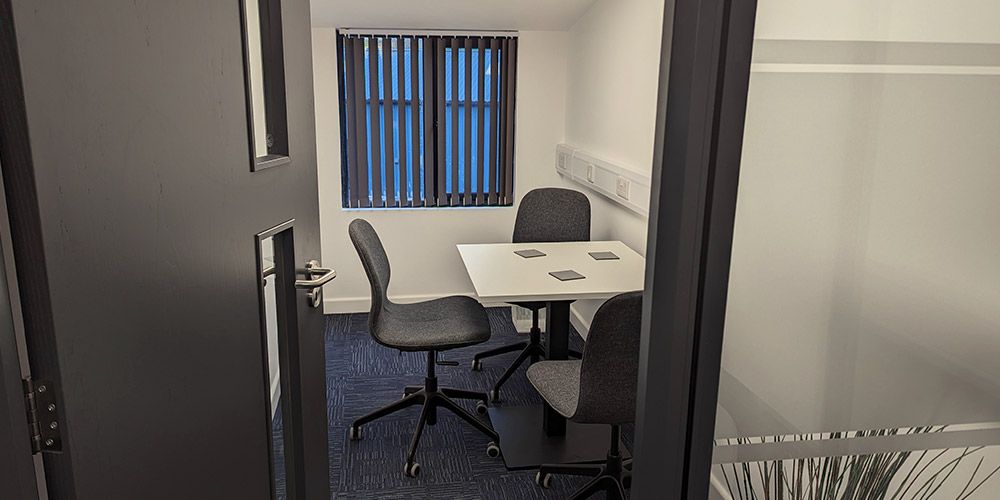 Our second private space is recommended as either an interview room, small meeting room or private office and is also set up with desks for up to three people.